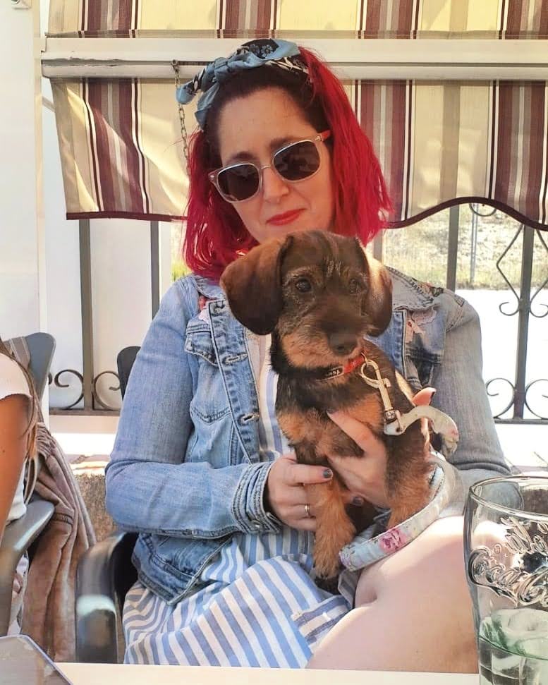 Dama es una teckel estándar de pelo duro, Tiene 3 años, pero es muy pequeña para ser estándar, ya que su peso normal son 4.5 kilos.