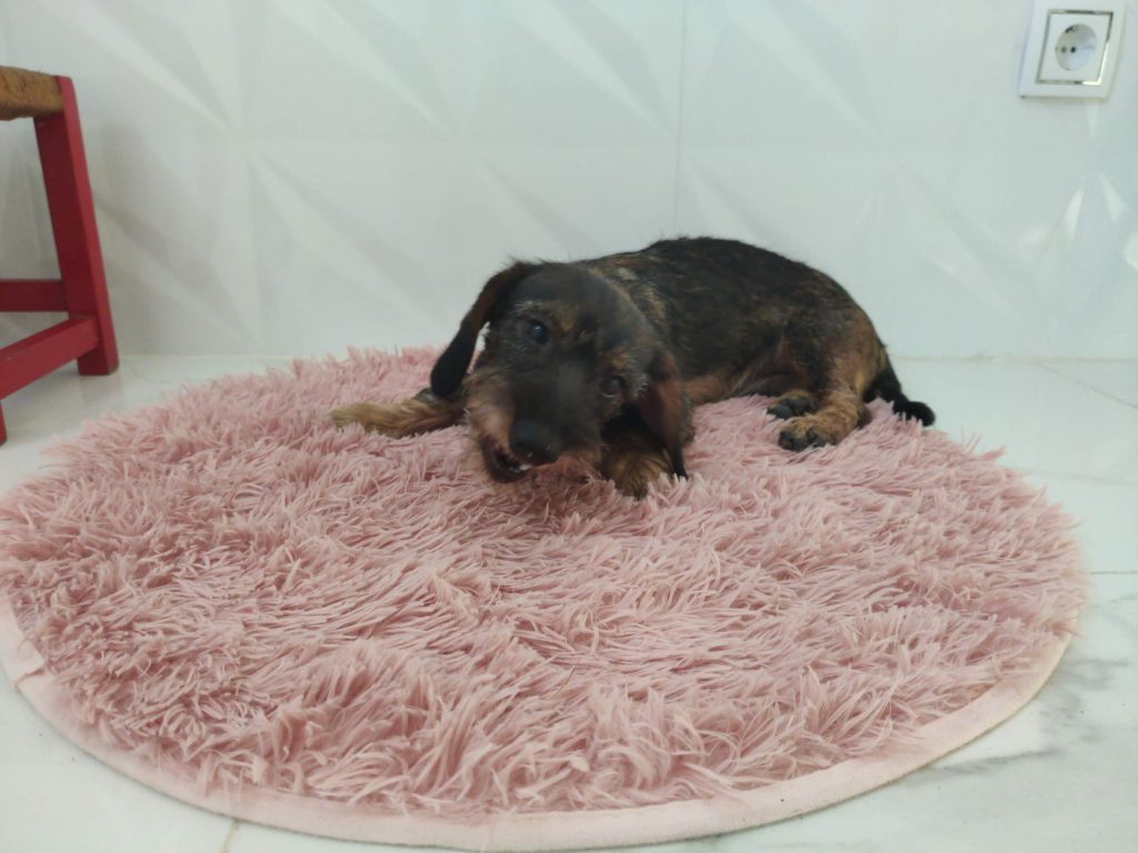 Bimba, es la más joven y la más grande de todos, es una teckel de pelo duro estándar, de color negro fuego.